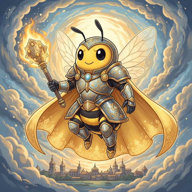 У цьому NFT бджола постає як небесний воєначальник, що керує світлом, захищає правду й підтримує гармонію між небом і землею. Це образ духовного лідера, який несе ясність, силу й незламність.