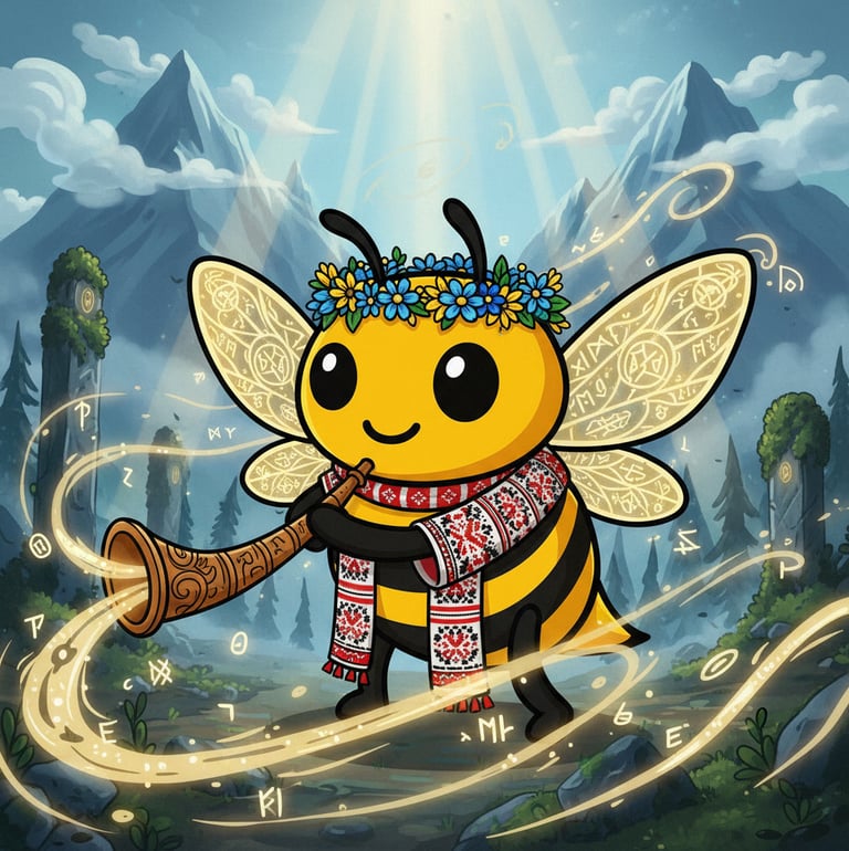 У цьому NFT бджола постає як карпатський володар стихій, що керує туманами, вітрами, світлом і землею. Це образ, який поєднує магію, природу й духовну глибину.